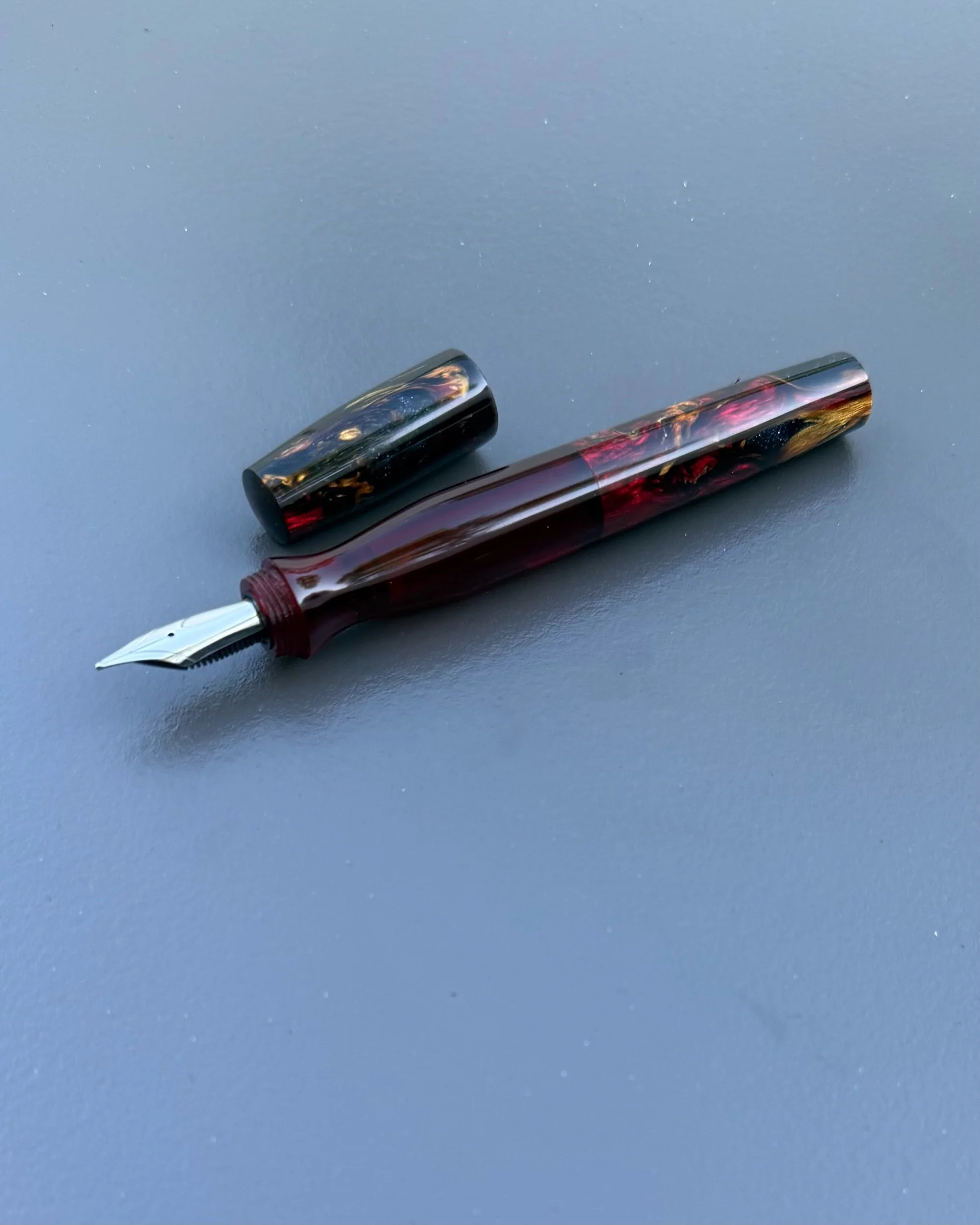 Available Pens › Vanyar Sapphire Mermaid Image 1 of 3 Image 2 of 3 Image 3 of 3 Vanyar Sapphire Mermaid $200.00 Comes with Jowo #6 nib (EF, F, M, B) and a Schmidt K5 converter. Add To Cart Added! Comes with Jowo #6 nib (EF, F, M, B) and a Schmidt K5 converter.